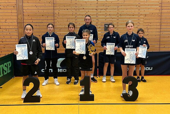 Bei den Mädchen der U13 setzte sich Leni Heckel (STTB) mit einer makellosen Bilanz von 7:0 Spielen an die Spitze und verwies Sarah Wang (PTTV) auf den zweiten Platz. Dahinter kämpften die Spielerinnen des RTTVR um den dritten Rang. Naja Alhäuser (TTG Mündersbach/Höchstenbach) sicherte sich den dritten Platz mit einer Bilanz von 4:3. In einem spannenden Duell um die Bronzemedaille setzte sie sich knapp mit 3:2 gegen ihre Teamkameradin Alba Garcia Alonso (PSV Trier) durch, die ebenfalls eine 4:3-Bilanz vorweisen konnte. „Alba hätte auch bei der U11 antreten können, doch sie hat sich bewusst entschieden, sich mit den älteren Mädchen zu messen – eine richtige Entscheidung, denn sie hat bewiesen, dass sie auch in dieser Altersklasse gut mithalten kann“, lobte Füzi.