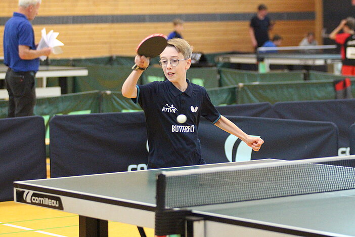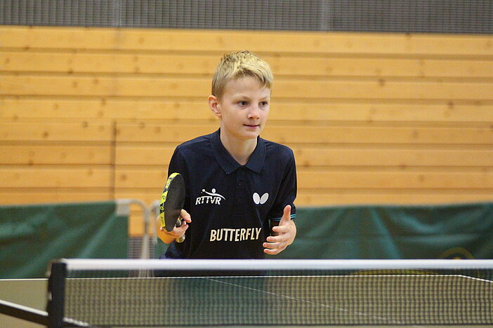Überraschend stark präsentierte sich auch Levi Schleinat (ebenfalls TuS Rot-Weiss Koblenz), der mit seiner Abwehrstrategie und gezielt eingestreuten Angriffsschlägen den zweiten Platz mit einer 5:2-Bilanz errang. „Levi hat eine hervorragende Leistung gezeigt. Seine Mischung aus Abwehr und Angriff hat viele Gegner vor Probleme gestellt“, lobte Füzi.