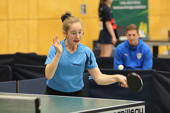 Drei Spielerinnen des TTC Mülheim-Urmitz machten den Titel bei den Mädchen 18 unter sich aus. Dass dabei Li Meng im Halbfinale Ilsa Krebs mit 13:15 im fünften Satz unterlag, war für Anja Becker nicht die große Überraschung. „Es war ein ganz spannendes, sehr enges Spiel“, sagte die Jugendwartin. „In einem vereinsinternen Duell kann das vorkommen.“ Im Endspiel setzte sich dann Larissa Berger, die in der Vorschlussrunde Liska Märtens (TSV Gau-Odernheim) glatt geschlagen hatte, mit 3:1 gegen Krebs durch. Berger und Li haben noch eine Saison in dieser Altersklasse vor sich, Krebs (Jahrgang 2006) und Märtens (Jg. 2005) sind sogar bei den Mädchen 15 startberechtigt.
