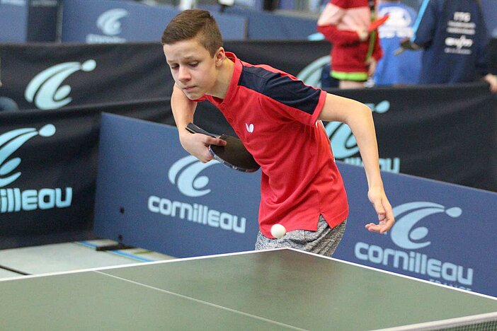 Bei den Jungen 15 gab es in Vincent Keßler, Colin Grave (beide SV Windhagen), Torben Seibert (TTC Mülheim-Urmitz), Elias Mehlig (FSV Mainz 05) und Ole Kaspers (TSG Drais) gleich fünf Vorqualifizierte für die Region-7-Meisterschaft. Die drei Letzteren nahmen dennoch teil, mussten aber Felix Meyer den Vortritt lassen. Der Spieler des TuS Weitefeld-Langenbach bezwang im Finale Mehling in drei Sätzen. Meyers Vereinskollege Finn Schütz, der in der Vorschlussrunde Mehlig unterlegen war, zuvor aber etwas überraschend Seibert bezwungen hatte, sicherte sich den zweiten Quotenplatz. Den dritten halten sich die Verantwortlichen noch offen. Ein Kandidat ist Johann Schellenberg (FSV Mainz 05), der vierte Halbfinalist. „Es stehen die verdient oben, die wir da auch erwartet hatten“, kommentierte Anja Becker den Ausgang.