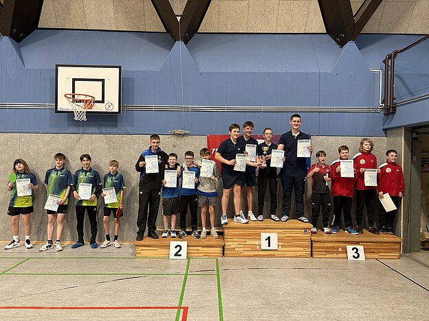Bei den Jungen 15 setzte sich der TTC Zugbrücke Grenzau souverän durch und sicherte sich mit starken Leistungen den ersten Platz. Auch die weiteren Platzierungen wurden in intensiven Begegnungen ausgespielt, wobei insbesondere die Spiele zwischen den Mannschaften aus Koblenz, Trier-Olewig und Grün-Weiss Kirn hart umkämpft waren.