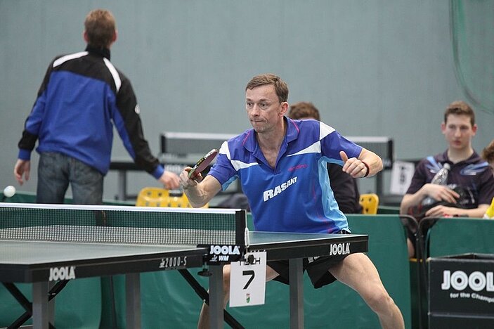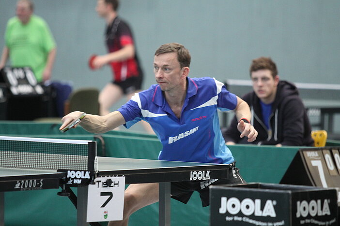 Der Sieger der B-Klasse (bis 1950 Punkte) kommt aus der Eifel. Dirk Petzold (TTG Gerolstein/Daun) war nicht zu schlagen und hatte nur im Halbfinale gegen Thomas Bauer (TV Feldkirchen) mühe. Das Endspiel gegen Maxi Bohn dominierte er nach belieben. Trotzdem natürlich ein großer Erfolg des jungen, aufstrebenden Bohn der im Halbfinale den Noppenspezialist Alexander Döll (TTG Pellenz) ausschaltete.