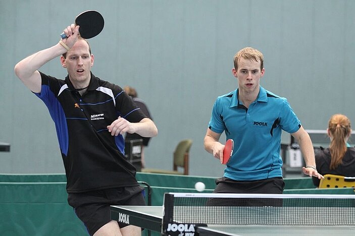 Im Doppel musste der überlegene Einzelsieger Geier allerdings im Halbfinale mit Scharff die Segel streichen. Genau wie Immanuel Lauterbach/Jannik Mussel (TTC Wörrstadt). Im Endspiel siegten Sascha Jordan/Peter Schneider (SG TT Laubenheim) gegen Benedikt Fabritius (TTC Karla)/Sebastian Oettgen mit 3:0.