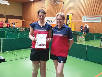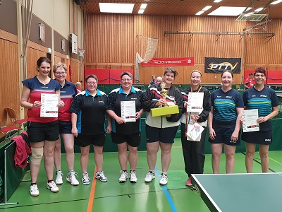In der Damen Ü 40- Klasse fehlte das Team aus Rheinhessen, so dass die Damen der TTF Asbacher Land nachgerückt waren. Neben den Damen aus Altenkirchen vertraten sie nun hier den TTVR. Zunächst musste dann einmal gegeneinander gespielt werden. Im Vergleich zur Rheinland-Meisterschaft in Engers konnten die Asbacher das Spiel spannender gestalten. Im Einzel gewann Gabi Roth gegen Nadine Heidepeter im fünften Satz. Nach dem Doppel und dem weiteren Einzel gehört der Sieg dann aber doch den Altenkirchenern. Um den Sieg mitspielen konnten hier jedoch die beiden Rheinland-Teams nicht. Die Konkurrenz insbesondere vom TTV Hasborn mit der dreifachen deutschen Seniorenmeisterin Nikola Jäckel war zu groß. Selbst die Damen der TSG Zellertal, die immerhin im nächsten Jahr Damen-Regionalliga spielen, hatten nicht den Hauch einer Chance.