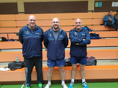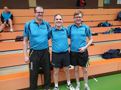 Bei den Herren Ü 50 trat der TTC Mülheim-Urmitz/Bhf. an. Hier war aus jedem Verband der Sieger angereist. Gegen die Mitfavoriten aus Besseringen konnten die Mülheimer ihre Spiele schon sehr knapp gestalten. Frank Best verlor in seinem Einzel zwei Sätze zu 9 und einen in der Verlängerung. Auch Thomas Weiler konnte sich in seinem Einzel nach zwei verlorenen Sätzen wieder ran kämpfen, verlor den dritten ebenfalls in der Verlängerung. Nach einem Sieg von Achim Greber hätte aber dann der Punkt im Doppel kommen müssen. Letztlich wurde Besseringen seiner Favoritenrolle gerecht und gewann mit 4:1. Gegen Leiselheim wählten die Mülheimer eine ein wenig andere Aufstellung und ging direkt mit 2:0 in Führung. Die Leiselheimer konnten jedoch aufholen 2:2. Bei den weiteren beiden Einzeln gab es wiederum eine Punkteteilung 3:3, so dass das letzte Einzel entscheiden musste. Achim Greber kämpfte sich gegen Alexander Krießbach bis in den fünften Satz, hatte aber dann leider mit 7:11 das Nachsehen. Im letzten Gruppenspiel konnten die Mülheimer dann immerhin mit 4:0 gewinnen und den dritten Platz ergattern.