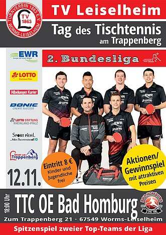 Tag des Tischtennis am Trappenberg: TV Leiselheim empfängt Titelaspirant TTC OE Bad Homburg