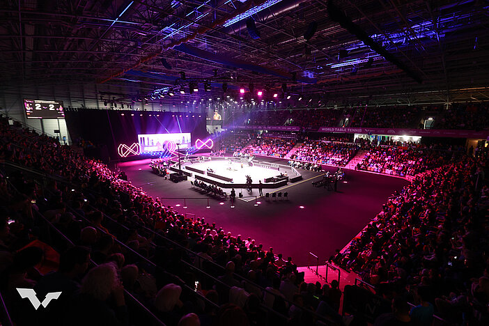 - Besonderheiten: alle Matches an nur 1 Tisch, achteckiger Centercourt, die Zuschauer sitzen dicht am Geschehen, Showprogramm mit Lichteffekten, Tanz-Performances und Musik-Acts