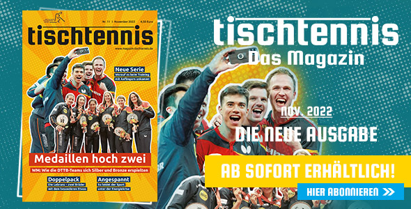 Ohne das Olympia-Trio Dimitrij Ovtcharov, Timo Boll und Patrick Franziska reisten Deutschlands Herren zur WM nach Chengdu – und übertrafen dort viele Erwartungen. Wie es das stark verjüngte Team um Europameister Dang Qiu schaffte, ins Finale einzuziehen, das lesen Sie in tischtennis. Doch nicht nur die deutschen Herren sorgten in Chengdu für Furore, denn den Damen gelang mit dem Gewinn der Bronzemedaille ein seltener und besonderer Erfolg. Alle Hintergründe dazu finden Sie in ebenso in der November-Ausgabe von tischtennis. Auch nicht oft kommt es vor, dass eine chinesische Mannschaft bei einer Team-WM ins entscheidende Einzel muss. Genau das passierte aber Chinas Herren im Halbfinale gegen Japan, verantwortlich dafür war Tomokazu Harimoto. Wie der Japaner gleich zwei Spieler aus dem Reich der Mitte schlug und diese Siege bewertet, lesen Sie – neben weiteren interessanten Geschichten rund um die WM – in tischtennis. Außerdem finden Sie u.a. folgende Themen im Heft:
