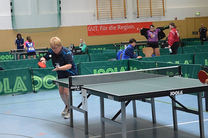 Auch bei den Damen B waren mit Rosemarie Gorges von Gelb-Rot Trier und Patricia Rech von Bad Neuenahr zwei Starterinnen des TTVR dabei. Beide hatten eine schwere Gruppe erwischt. Rosemarie Gorges verlor alle drei Gruppenspiele, hatte aber zumindest gegen die Gruppensiegerin Höbke Dibbern aus Schleswig-Holstein die Chance, das Spiel für sich zu entscheiden, scheiterte bei der 1:3 Niederlage allerdings knapp.