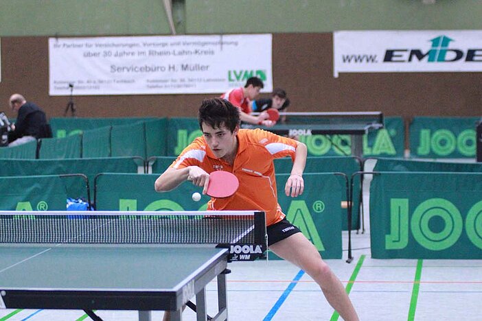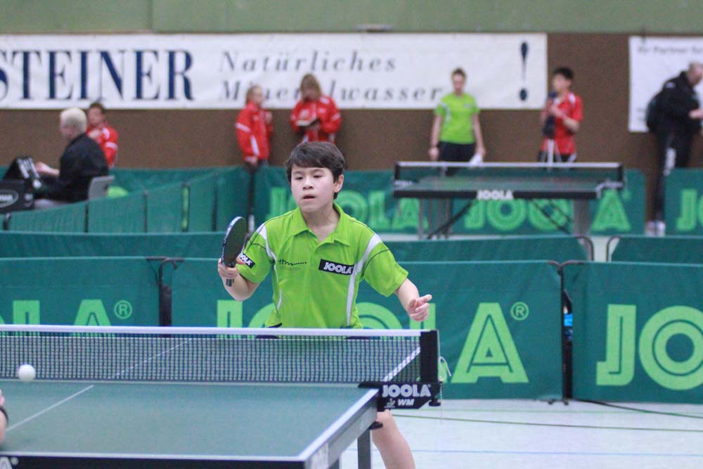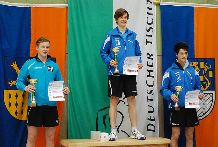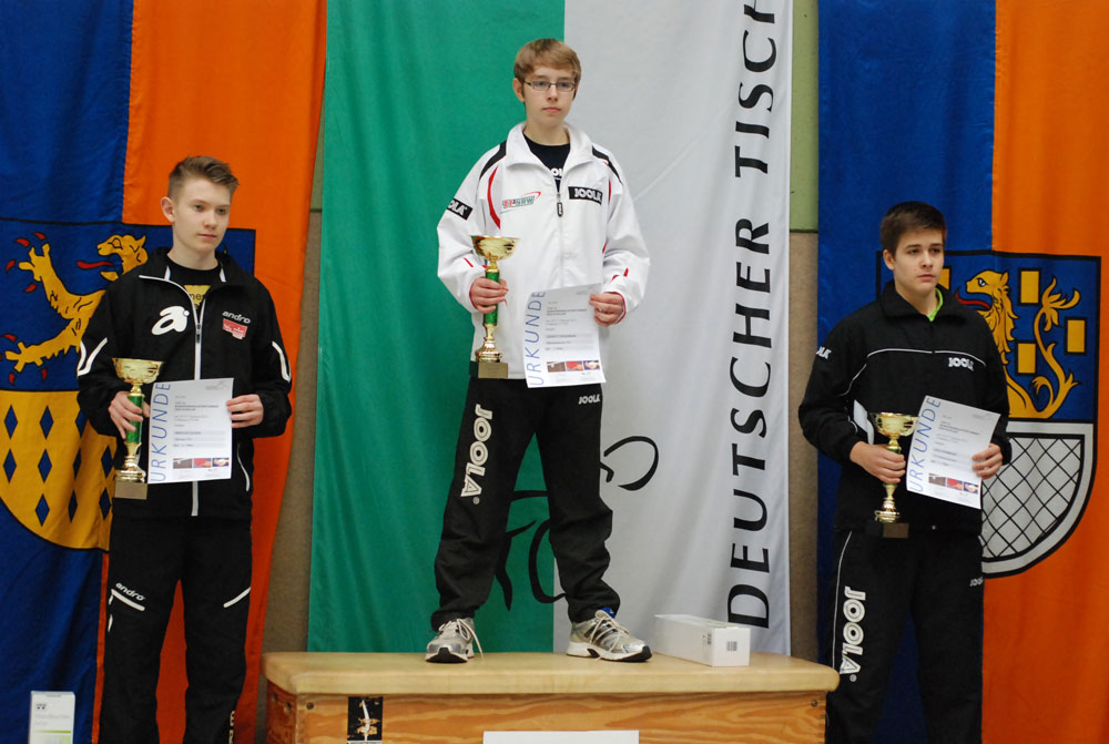 Bei den Jungen konnte sich am Ende Kilian Ort (TSV Bad Königshofen – Bayern) durchsetzen, der in der letzten Runde gegen den „härtesten Brocken“ Liang Qui (TTC Frickenhausen – Baden-Württemberg) antreten musste. Am Ende stand Ort, mit einer Niederlage bei zehn Siegen, ganz oben auf dem Treppchen. Marc Rode, SV Viktoria Preußen Frankfurt – Hessen) der in dieser Saison mit seinem Team in der Regionalliga den TV B Nassau besiegt hatte, kam auf Platz zwei vor Florian Schreiner (SC Fürstenfeldbruck – Bayern).