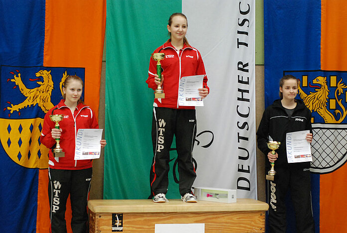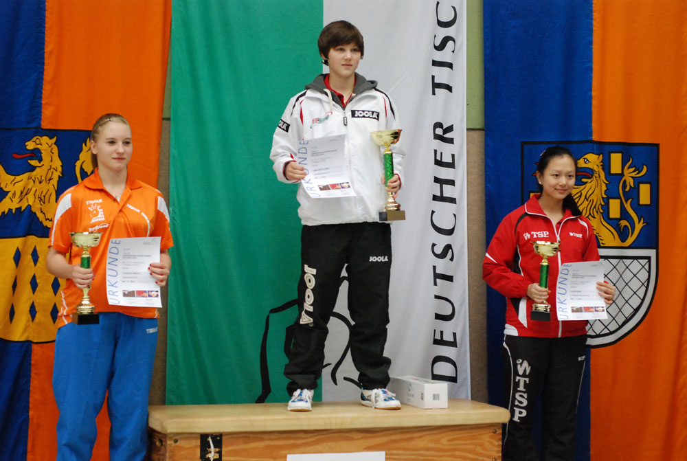 Ebenfalls eine Niederlage hatte am Ende die Siegerin bei den Mädchen auf dem Konto: Nina Mittelham (TuS Bad Driburg – Westdeutscher Tischtennis Verband) wurde Erste vor den ebenfalls mit einer Niederlage belasteten Chantal Mantz (SV DJK Kolbermoor) und Yuan Wan (TB Wilferdingen – Baden-Württemberg).