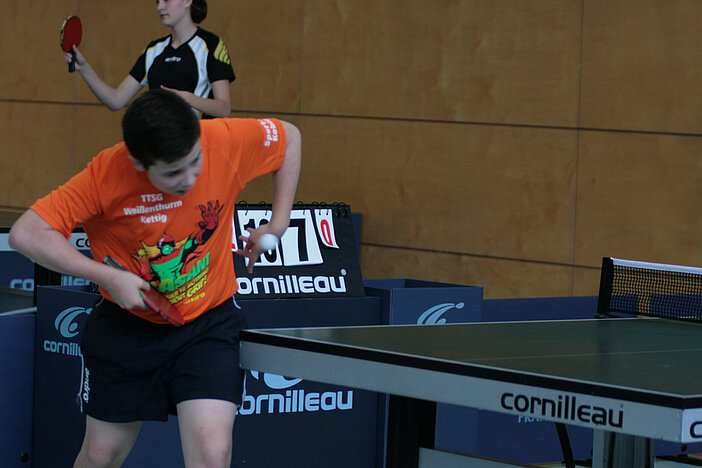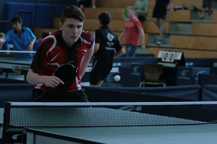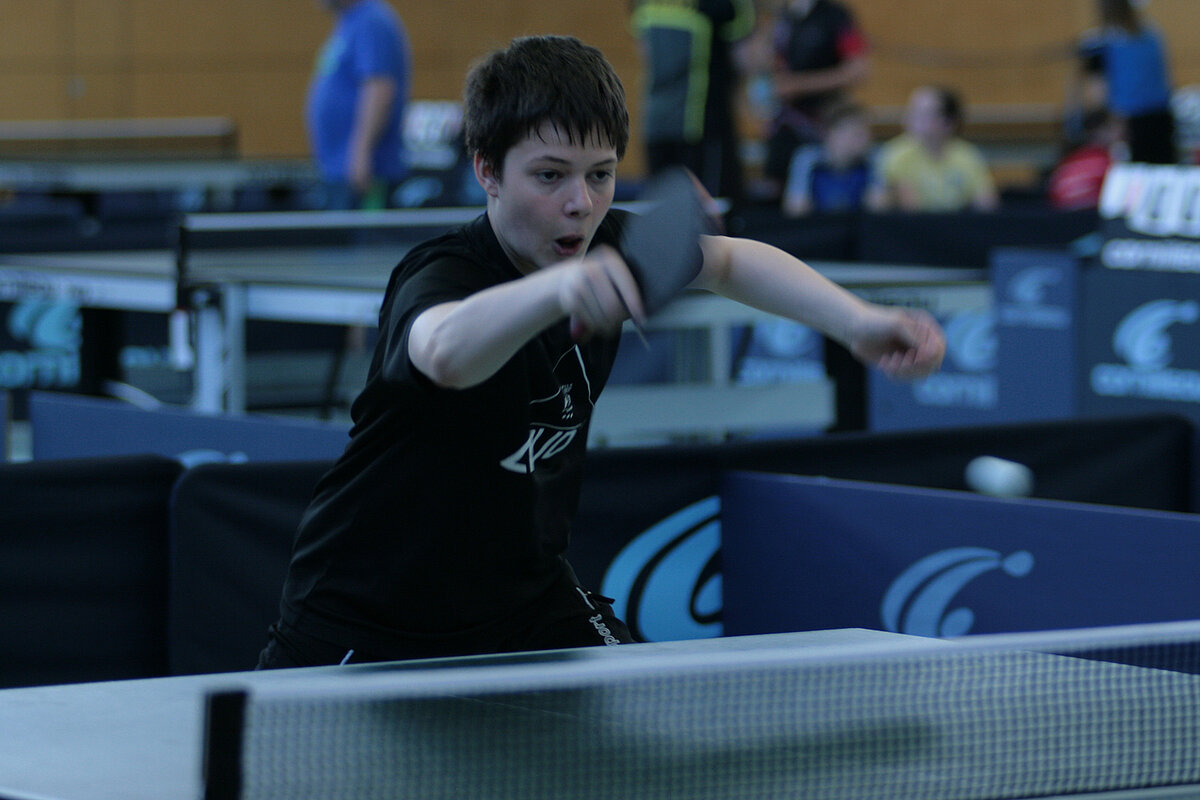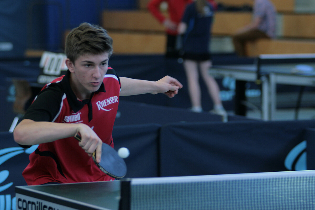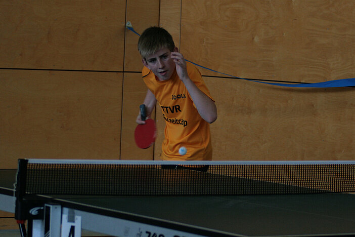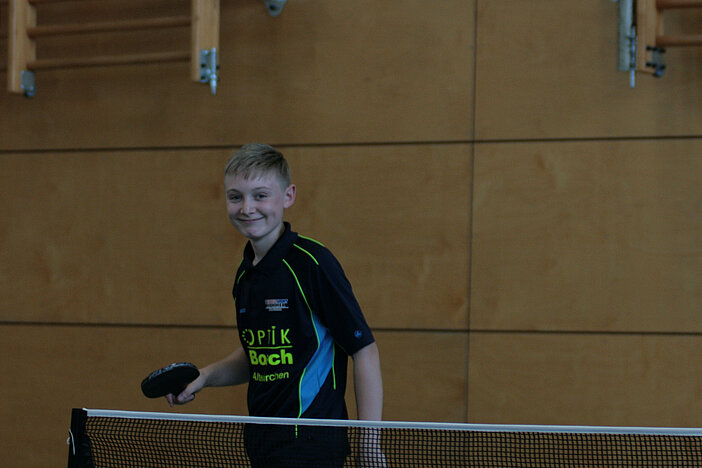 So richtig spannend wurde es bei den A-Schülern erst im Finale. Hier hatte Paul Richter zum ersten Mal an diesem Tag so richtig zu kämpfen. In fünf Sätzen rang er Max Klink (TTG Schüller-Kerschenbach) nieder und sicherte sich den Turniersieg. Dritter wurde Nico Lamby (VfR Simmern), der in einem ebenfalls spannenden Match Leon Müller (TuS Weitefeld-Langenbach) bezwingen konnte.