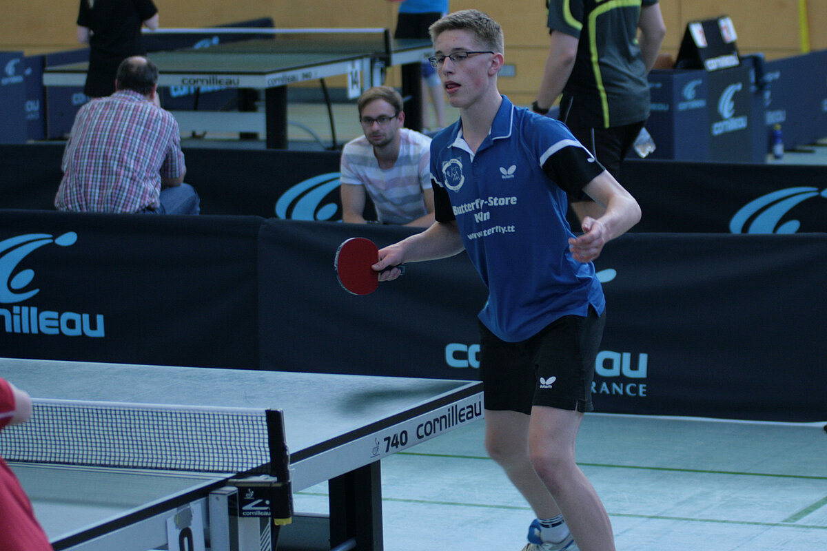 Zum ersten Mal ganz oben auf dem Treppchen platzierte sich Lukas Kalt. In einem spannenden Finale rang er Marc Weber (TTF Konz) in 5 Sätzen nieder. Leon Seiler (TTC GR Trier) und Bastian Aller (TTC Wirges) belegten die weiteren Plätze.