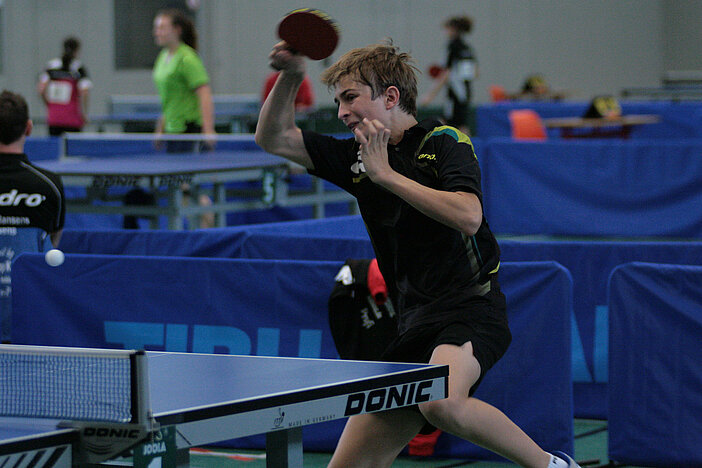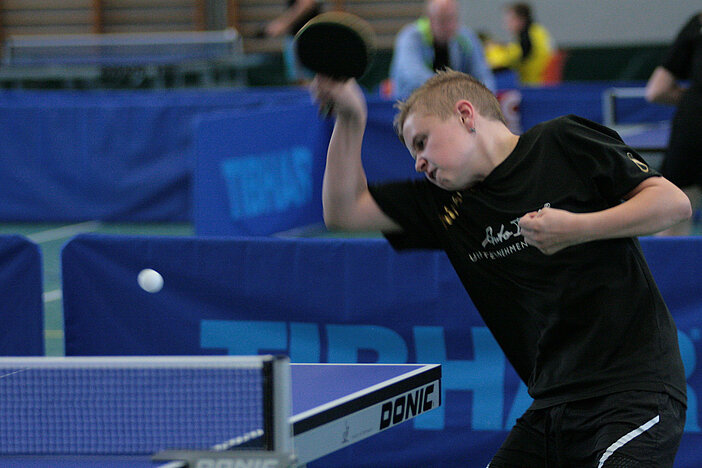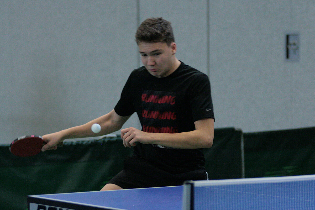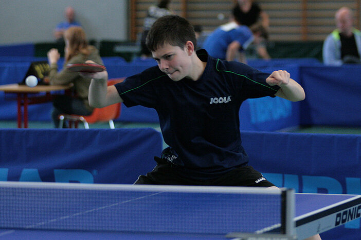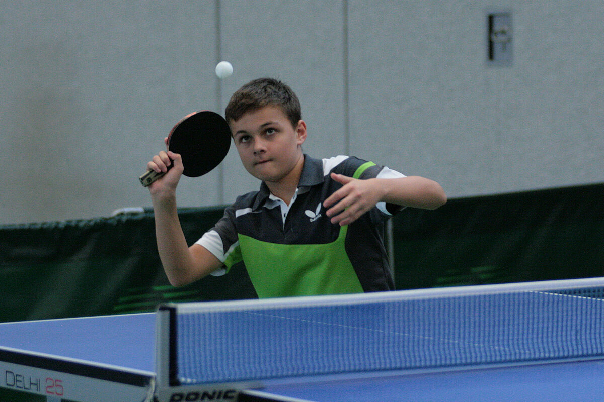 Der beste C-Schüler war aber schon bei den B-Schülern am Start. Der Mündersbacher Tobias Sältzer dominierte aber auch hier die Konkurrenz und bestätigte einmal mehr seine Ausnahmestellung in den jüngeren Nachwuchsklassen. Filip Fleming (Weitefeld-Langenbach) wurde mit einem mehr gewonnen Satz Zweiter vor Lokalmatador Gabriel Nelles und wird den TTVR in der Region7-Quali vertreten. Bei den B-Schülerinnen waren Celine Wagener (VfL Kirchen) und Maria-Luisa Gneiding (TTG Daun-Gerolstein) am Ende vorn.