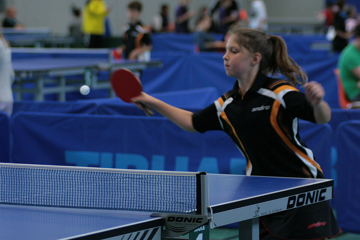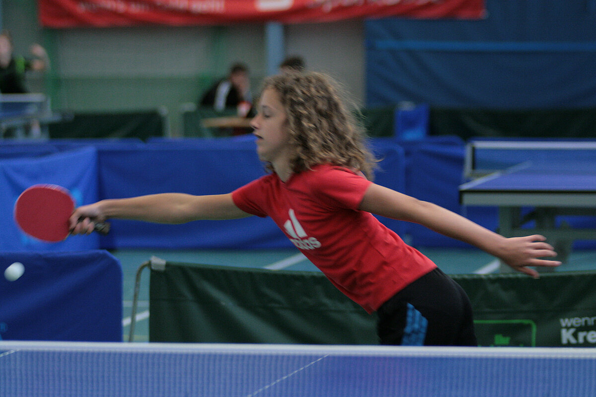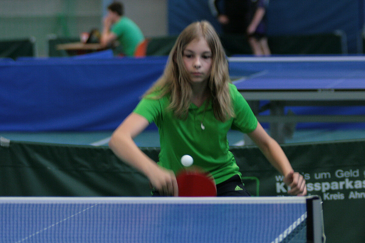 Anja Becker freute sich aber ganz besonders über eine Trendwende bei den allerjüngsten Spielerinnen: „12 C-Schülerinnen sind gekommen. Das finde ich erfreulich!“ Hanna Theis (Blau Weiß Greimerath) hat sich bestimmt noch mehr gefreut. Denn sie hat das Turnier gewonnen vor Amelie Monsieur (Grenzau) und Alina Pankraz (Kirchberg/Rhaunen). Bei den C-Schülern war Peter Willeke (TV Andernach) erfolgreich. Er schlug Colin Grave (TuS Horhausen) in einem dramatischen Match 12:10 im 5. Satz. Knapper ging es gar nicht.