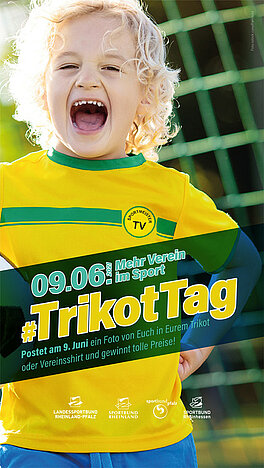 Nach der großartigen Premiere im vergangenen Jahr im Rheinland rufen Landessportbund, Sportbund Pfalz, Sportbund Rheinhessen und Sportbund Rheinland in 2021 gemeinsam zu einem landesweiten #TrikotTag auf. Alle Sportvereinsmitglieder können am Mittwoch, 9. Juni, Werbung für ihren Sport machen, indem sie das Trikot, das Polo-Shirt oder die Trainingsjacke ihrer Sportmannschaft oder ihres Heimatvereins tragen.
