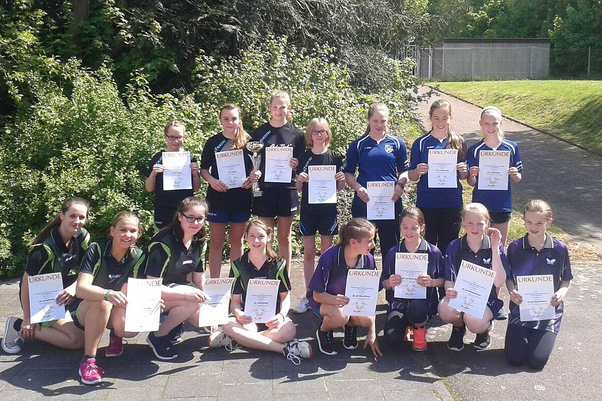 Bei den Schülerinnen waren Layla Eckmann, Katrin und Simone Drysch und Jessica Loor vom TTC Wirges nicht zu schlagen. Die Vier waren aufgrund ihrer Ranglistenpositionen klare Favoritinnen auf den Titel und gaben in insgesamt drei Spielen nur vier Punkte ab. Sehr beachtlich war hier die Leistung der Mannschaft aus Schwirzheim. Jenny Schalz, Meike Thies und Kathrin Leifgen traten nur zu dritt an und erreichten doch den zweiten Platz. Dabei knöpften sie Wirges sogar auch noch ein Doppel und ein Einzel ab. Gegen Kichberg/Rhaunen und Sinzig/Ehlingen konnten sie deutlich gewinnen.