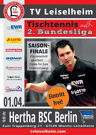 Am Wochenende steht das letzte Heimspiel der Saison für den TV Leiselheim an. Mit Hertha BSC Berlin kommt dabei eine Mannschaft zum Trappenberg, die mitten im Abstiegskampf steht. Nur zwei Punkte trennen die Berliner, die über eine großteils aus europäischen Altstars geformte Mannschaft verfügen, vom ersten Abstiegsplatz. In der Rückrunde konnte sich die Hertha mit weiteren Spielern verstärken – unter anderem mit dem ehemaligen Weltklassespieler Aleksandar Karakasevic. „Für Berlin wird es ein spannendes Saisonfinale“, so der TVL-Trainer.