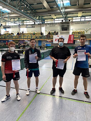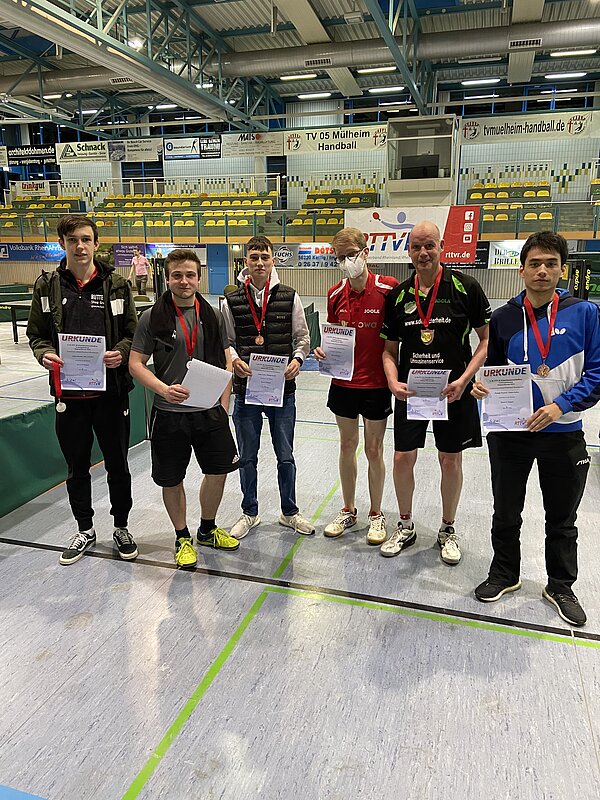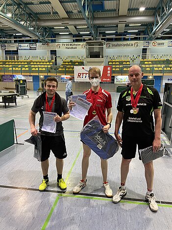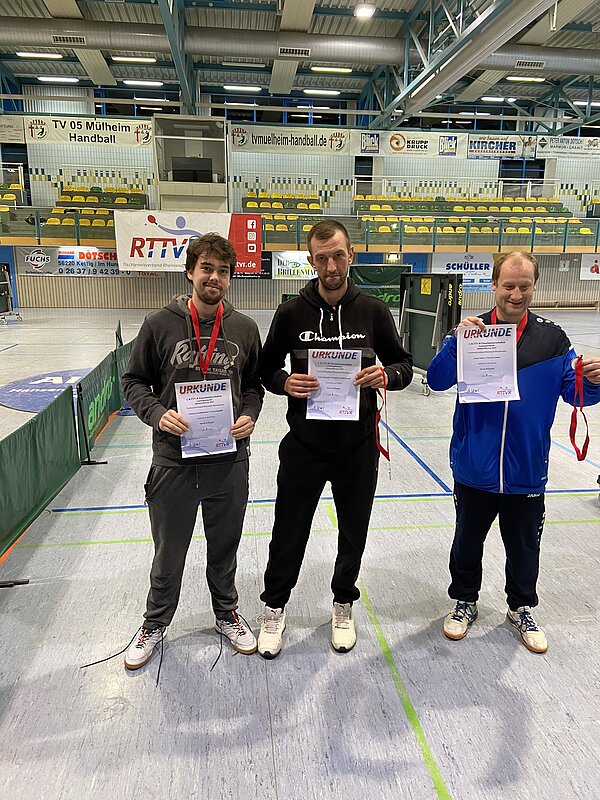 Den ersten Startplatz bei diesem Turnier sicherte sich Felix Thomes (TuS Neuerkirch/Külz). In einem spannenden Finale gegen Daniel Reuter (TuS Kettig) behielt der erst 13-jährige Thomes im Entscheidungssatz die Oberhand. Ebenfalls über fünf Sätze ging das Endspiel der Herren C-Klasse: Hier standen sich Michael Berger (TSV Sponsheim) und Harald Poss (Hassia Kempten) gegenüber, die zusammen kurz zuvor noch Seite an Seite die Doppelkonkurrenz für sich entscheiden konnten. Am Ende krönte sich Michael Berger zum neue Verbandsmeister.