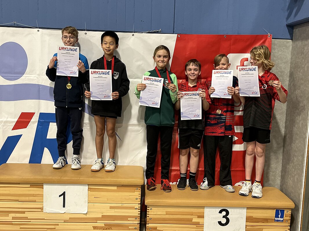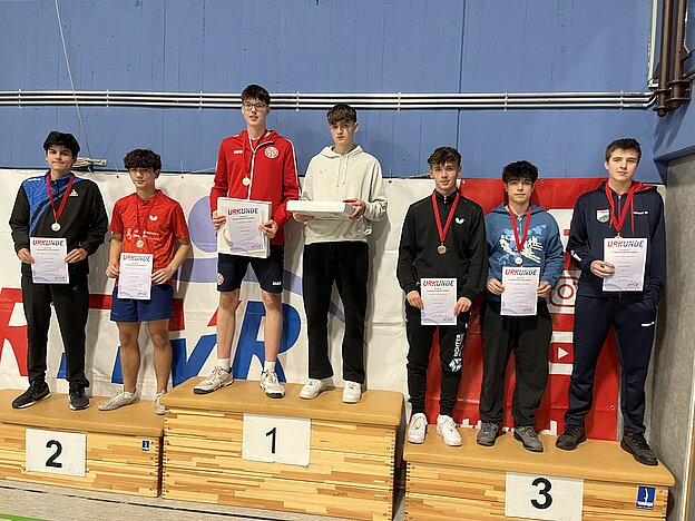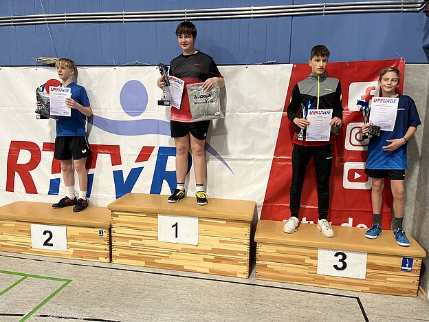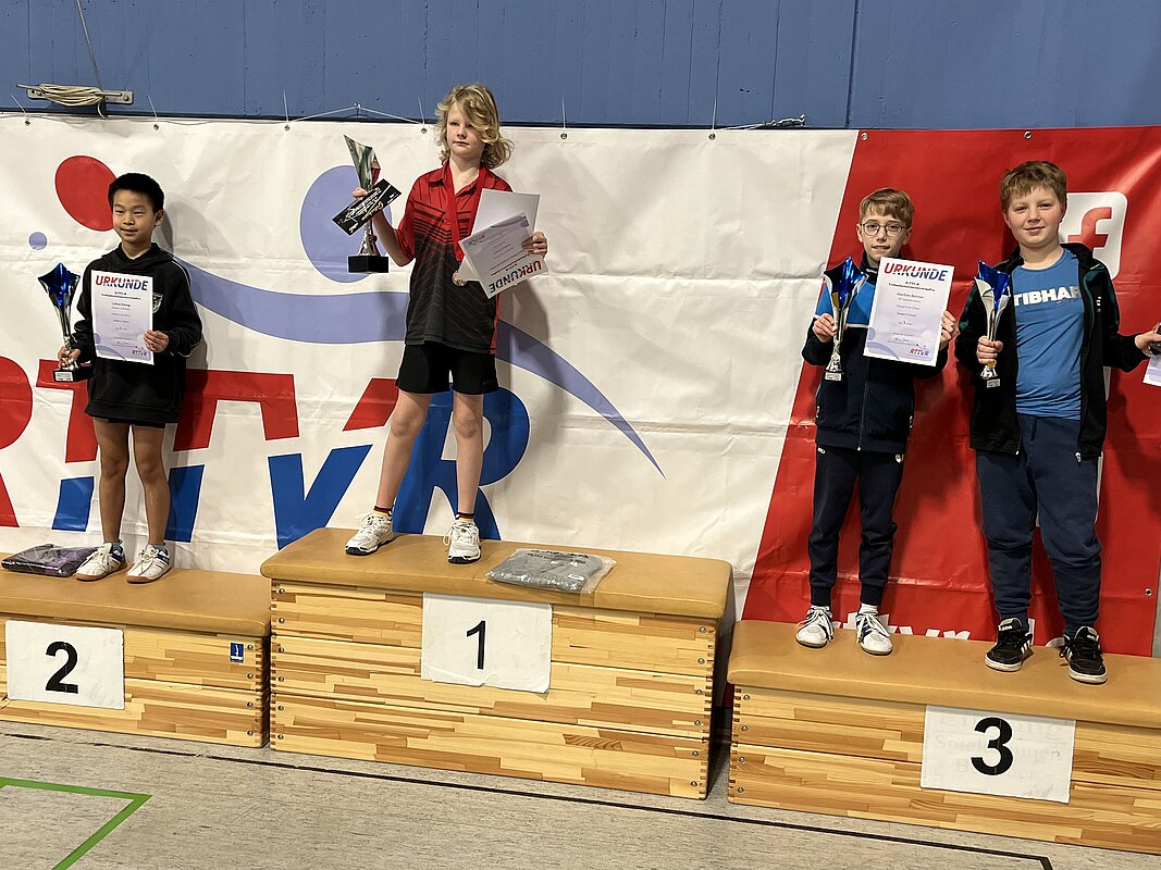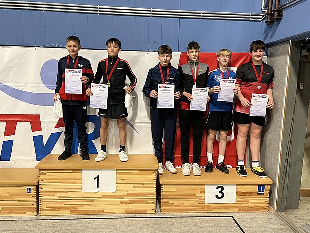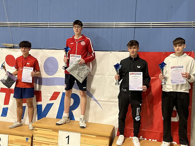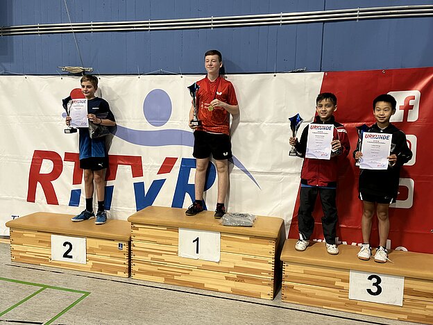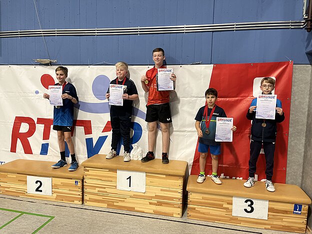 In den Einzelklassen der Jungen hingegen strauchelten viele Favoriten bereits früh. Für Ranglistensieger Mika Korn (SV Eintracht Mendig) war in der Jungen 15-Klasse bereits im Viertelfinale gegen den späteren Verbandseinzelmeister Thomas Wieland (TV Leiselheim) Endstation. Leopold Grüß (SV Windhagen), ebenfalls als Ranglistensieger und Favorit der Jungen 19 zum Turnier gereist, konnte sich in der Gruppe noch mit 3:0 spielen und ohne Satzverlust durchsetzen. Umso überraschender kam daher sein Ausscheiden im Viertelfinale. Bei den Jungen 19 errang letztlich Ole Kaspers vom FSV Mainz 05 den Titel, der sich in der Vergangenheit auch bereits auf Bundesebene hervorgetan hatte. In der Klasse Jungen 11 Einzel wurde Simon Zöllner vom TuS Rot-Weiß Koblenz Verbandseinzelmeister, nachdem er sich unter anderem im Halbfinale mit 3:1 gegen Titelfavorit Marlon Börner (TTC Zugbrücke Grenzau durchgesetzt hatte. Ebenfalls eine Überraschung, hatte Marlon eigentlich das leicht bessere Jahr gespielt. Ganz Oben auf dem Treppchen der Jungen 13 stand Mika Limbach (Tus Weitefeld-Langenbach).