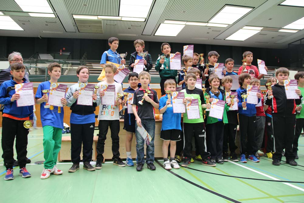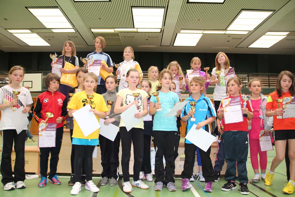 Nach rund 6 Stunden anstrengendem Wettkampf konnten alle 77 Kinder bei der abschließenden Siegerehrung ihre Urkunden, Pokale und Sachpreise entgegennehmen.