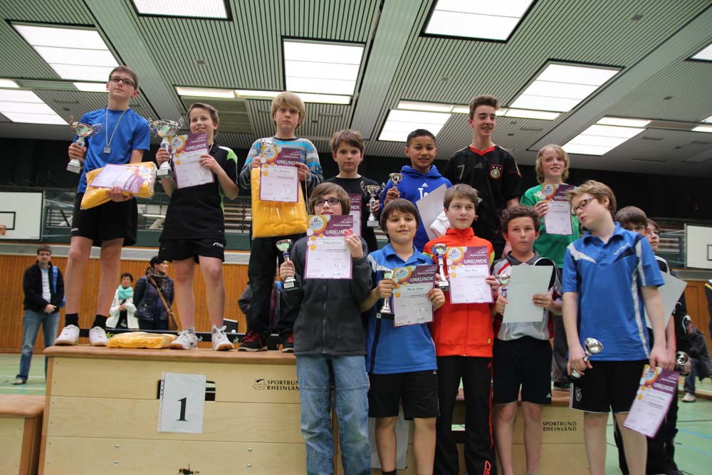 Bei den 30 teilnehmenden Jungen in der Altersklasse bis 10 Jahre ging es nach der Vorrunde ( in 8 4er bzw. 3er Gruppen ) in der Hauptrunde um die vorderen Plätze deutlich weniger knapp zu . Der Sieger Max Klink ( Stadtkyll ) verlor in seinen vier Hauptrundenspielen lediglich einen Satz und konnte sich erst im Halbfinale mit 3:0 gegen Tim Simon ( Baumholder ) und im Endspiel wiederum mit 3:0 gegen Justin Seckler ( St.Katharinen ) durchsetzen und zog somit verdient seine Fahrkarte zum Bundesfinale. Das „kleine Finale“ um Platz 3 gewann Tim Simon gegen Nico Schramm ( Neustadt/Wied ).