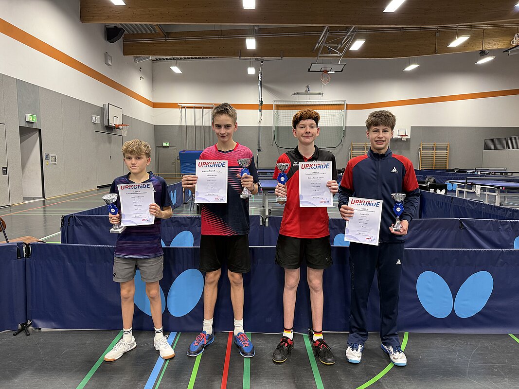 Bei den Jungen 11 setzte sich Levi Schleinat (TuS Rot-Weiß Koblenz) durch. Milo Waldorf (TTC Grün-Weiss Erpel) belegte Platz zwei, während Julian Behlen (TuS Rot-Weiß Koblenz) und Till Wenn (TuS 1904 Himmighofen) gemeinsam Dritte wurden.