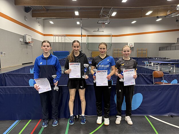 Bei den Mädchen 15 gewann Paula Beck (TTC Wirges) vor Magdalena Breuer (TTC Wirges). Nala Alhäuser (TTG Mündersbach/Höchstenbach) und Theresa Zabel (RSV Klein-Winternheim) belegten die dritten Plätze.