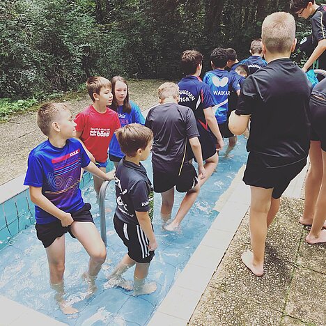 In der ersten Woche trainierte man im Rahmen der Arbeitsgemeinschaft zur Förderung des Nachwuchsleistungssports Rheinland-Pfalz zusammen mit Trainingspartnern aus der Pfalz und Rheinhessen. „Wir haben uns gut aufeinander abgestimmt, so dass die Spieler von den neuen Trainingspartnern nur profitieren können“, erläutert Felix Füzi, der für die Gesamtleitung des Lehrgangs zuständig war. „Der Schwerpunkt lag natürlich zunächst einmal auf langen Ballwechseln und Beinarbeit, so soll die Basis für eine erfolgreiche Spielzeit gelegt werden“, fügt er hinzu und betont zugleich, dass auch der Spaß nicht zu kurz kommen durfte: „Das gute Wetter haben wir ausgenutzt, sind mal vor die Tür gegangen und haben z.B. ein Kneipp-Becken besucht oder ein Athletiktraining unter freiem Himmel durchgeführt.“