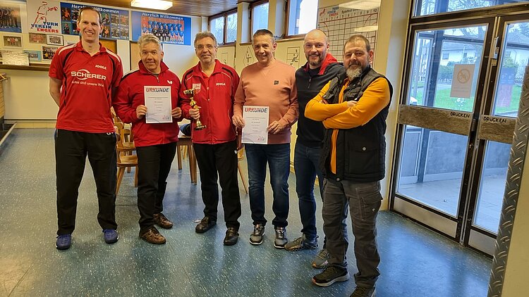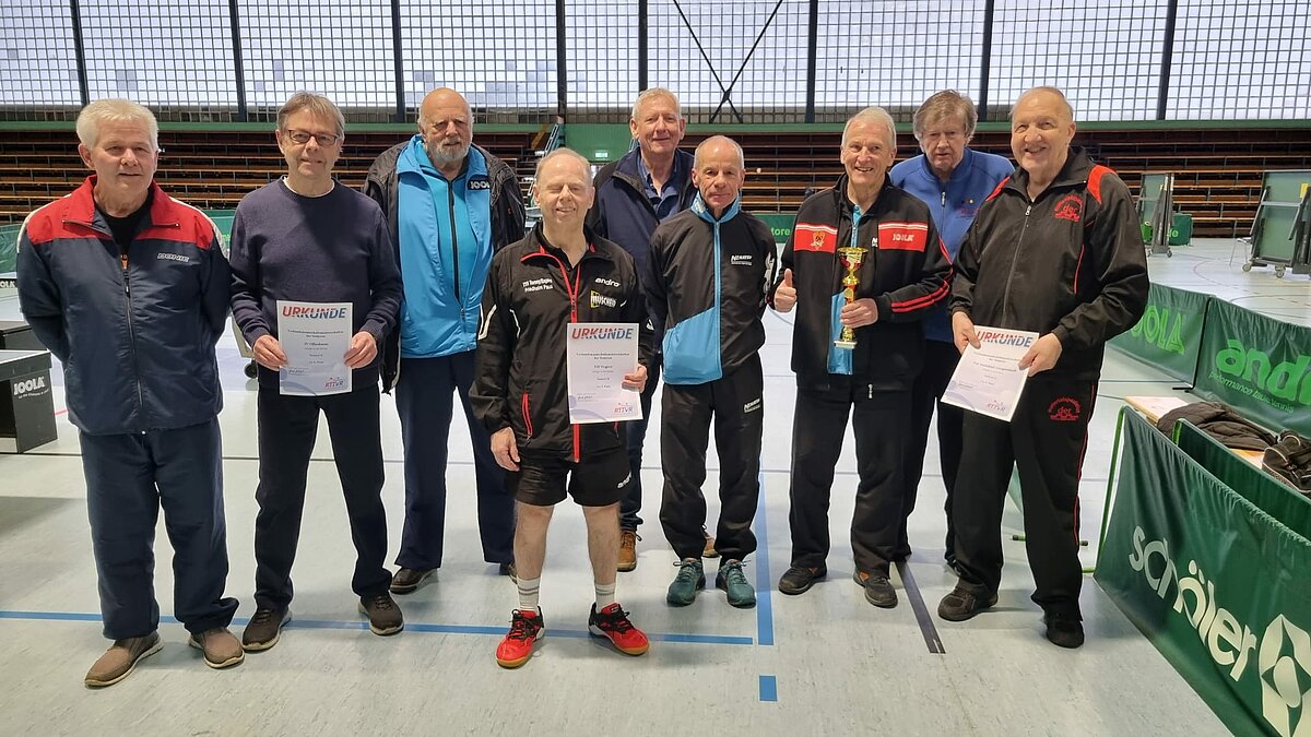 Darunter auch die letztjährigen Teilnehmer der Deutschen Meisterschaft der VfR Simmern (Senioren 50) und der TuS Weitefeld (Senioren 70). Beide Mannschaften verteidigten ihre Titel und vertreten somit den RTTVR bei den Südwestdeutschen Meisterschaften (15./16.04. in Engers).