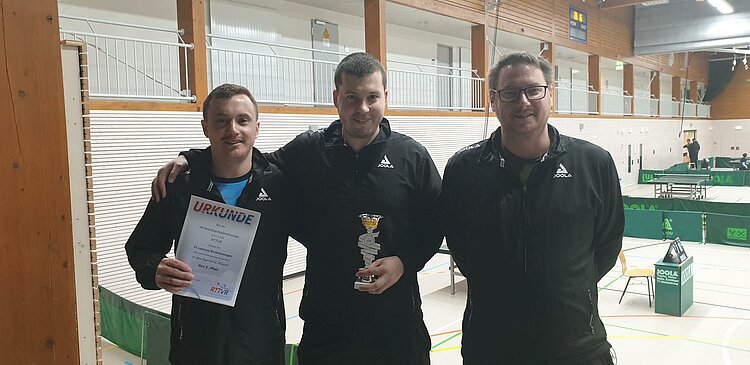 Dass auch Vereine aus der Eifel Sensationspotenzial besitzen, stellte am zweiten Turniertag die Mannschaft der TTG Daun-Gerolstein unter Beweis. Im Halbfinale der Herren A-Klasse kam es zum Verbandsoberliga-Duell mit dem TTC Grün-Weiß Zewen. Auf dem Papier eine klare Sache,schließlich spielte hier doch der letztplatzierte Absteiger Daun-Gerolstein gegen den Zweitplatzierten der Verbandsoberliga aus dem Trierer Stadtbezirk. Gemäß der alten Floskel „Der Pokal hat seine eigenen Gesetze“, ließ sich die TTG Daun-Gerolstein jedoch nicht beirren und zog mit 4:2 ins Halbfinale ein. Hier konnte der Finaleinzug mit einem 4:3 gegen die 3. Mannschaft von Mainz 05 gesichert werden. Gegen die SF Nistertal 07 reichten die Kräfte im Finale dann allerdings nicht mehr (1:4). Die Freude bei den Westerwäldern war groß und die Eifeler zeigten sich als faire Verlierer.
