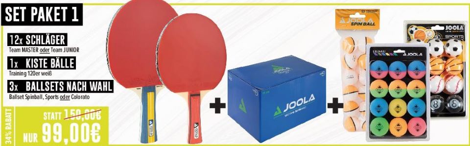 Daher möchten wir Ihnen die Möglichkeit geben, JOOLA Schlägersets zum Vorzugspreis einzukaufen.
