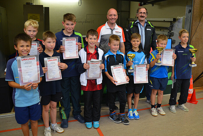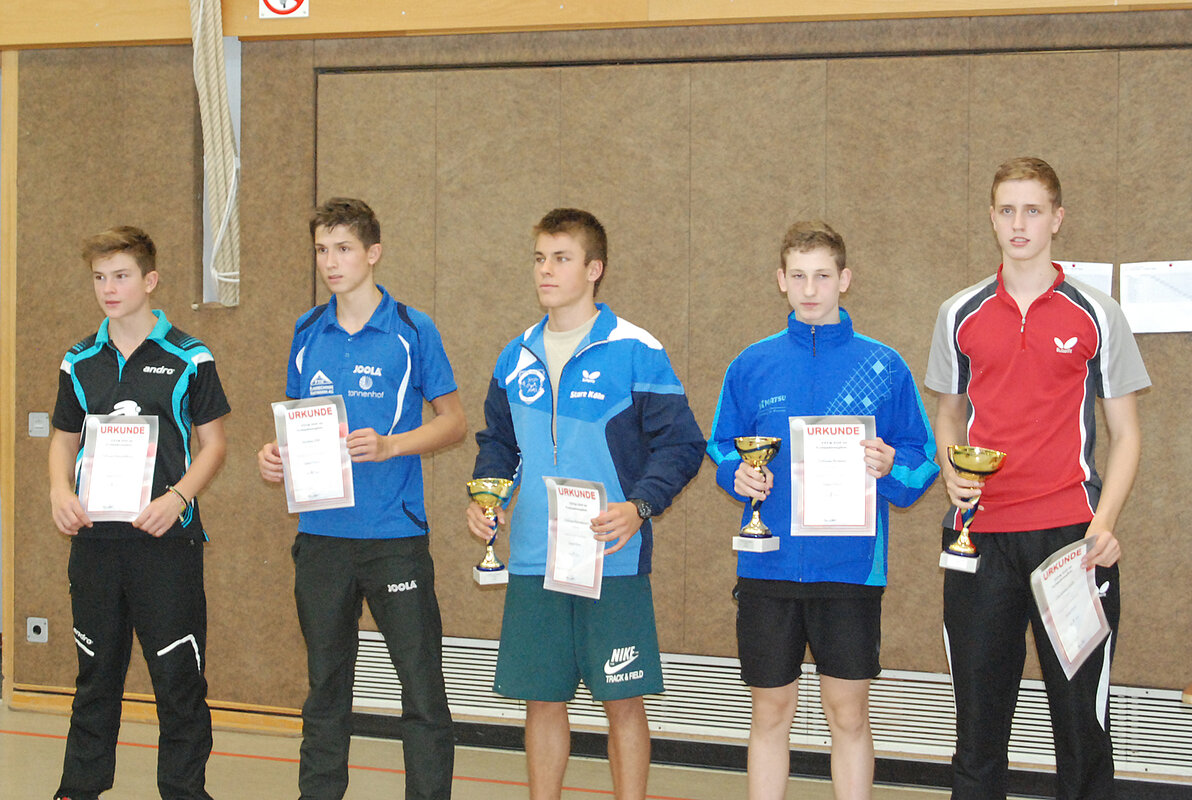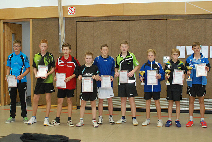 Bei den C-Schülern gewann Janosch Bresler (Karla) ebenso alle seine Spiele wie bei den B-Schülern Eric Ly (Weitefeld-Langenbach). Auf den zweiten Plätzen landeten bei den C-Schülern Johannes Willeke (Andernach) sowie Bastian Gehlbach (Oberwesterwald) bei den B-Schülern. Bei den A-Schülern war Aaron Emmerich (Konz) als Favorit ins Rennen gegangen, leistete sich aber unterwegs einen Ausrutscher. Der Wirgeser Maxi Bohn heftete sich an die Fersen mit einer sehr konzentrierten Gesamtleistung. Als es im direkten Vergleich darauf ankam, war Aaron Emmerich aber wieder voll da, gewann den direkten Vergleich in vier Sätzen und so auch die Rangliste.