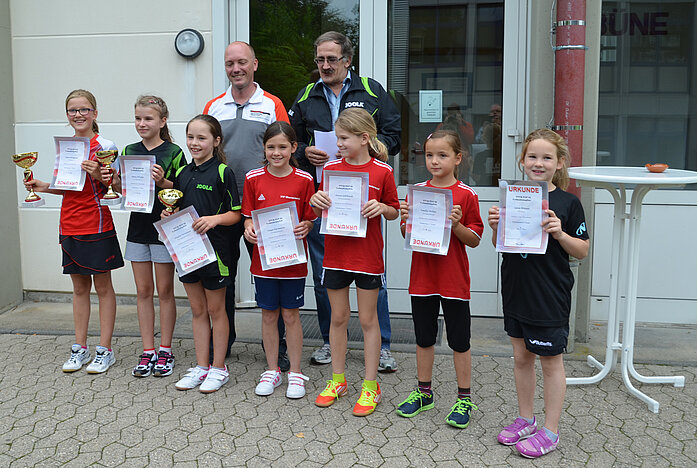 Eine echte Überraschung gelang Isabell Bruhn (Mülheim/Urmitz Bhf.) bei den Mädchen. Denn anfangs sah es so aus, als beherrsche Hannah Herschel (Wirges) die Konkurrenz. Aber Isabell Bruhn behielt knapp mit 3:2 Sätzen im direkten Vergleich die Oberhand und verlor auch sonst kein Spiel.
