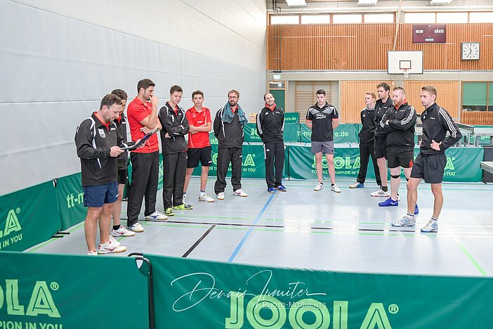 Nach drei Stunden war es vorbei. Das erste Spiel einer Dichtelbacher Mannschaft in der 1.Rheinlandliga geht zu Ende und so richtig wusste man jedoch nicht wie man die gezeigte Leistung einordnen soll. Direkt ein Derby gegen den VfR Simmern II sollte die Saison eröffnen. Die Rhein-Zeitung favorisierte die Kreisstädter. Konnte man von TuS-Seite so auch vorher bestätigen. In der Sommerpause verstärkten sich die Simmerner mit Arvid Kamann und Manuel Lohmann. Für Dichtelbach kam wie berichtet Dario Stenzhorn hinzu. Alle drei sind im Bereich der 1800 TTR-Punkte zu finden. An diesem Tag musste der VfR wie auch im ersten Saisonspiel auf Spitzenspieler Justin Seckler verzichten. Bereits vor Spielbeginn trafen einige Zuschauer in der Halle ein, so konnten schon die Doppel vor einer guten Kulisse gestartet werden. Die Kulisse war aus TuS-Sicht jedoch zu Beginn das einzige was gut schien. Sowohl Arturo Pastoriza/Torsten Musshoff, wie auch Dario gemeinsam mit Jonas Heydt verloren klar mit 0:3. Direkt Druck auf den Schultern von Nico Ballbach und Tobias Weber, von denen die Dichtelbacher sich eine starke Doppelbilanz als Doppel 3 erhoffen. In diesem Spiel konnten Sie überzeugen. Ein klarer Sieg brachte den TuS auf 1:2 heran. „Joba“ Baustert hatte keine Probleme mit dem Dichtelbacher Neuzugang Dario Stenzhorn. Arturo Pastoriza hingegen startete gegen Tobias Henrich furios und ging mit 2:0 in Front. Nachdem Tobias anschließend stärker wurde, konnte sich Arturo im vierten Satz nochmal steigern und brachte den TuS auf 2:3 heran. Torsten Musshoff konnte gegen Jungspund Enrico Liesenfeld lange mithalten, doch nutzte seine Chancen zu selten und musste sich letztlich verdient mit 1:3 beugen. Anschließend gewann Manuel Lohmann in einer taktischen Partie gegen Nico Ballbach mit 3:1. Jonas Heydt zeigte eine ansprechende Leistung gegen Arvid Kamann, der am Vortag noch beide Spiele im mittleren Paarkreuz gewann. Arvid entschied das Match mit 3:1 für sich. Jonas danach anerkennend: „Angenehmer Typ und starkes Spiel.“ Tobias Weber überzeugte anschließend gegen Julio Perez Rua mit einem 3:0 Erfolg. Im Anschluss spielten Arturo Pastoriza und Joachim Baustert das längste und interessanteste Spiel des Tages. Arturo konnte mit seiner Athletik seinem taktisch hervorragenden Gegenüber durchaus Paroli bieten. Bei 8:8 im fünften Satz und eigenem Aufschlag nach 1:6 Rückstand schien Arturo das Momentum auf seiner Seite zu haben, doch wie man „Joba“ so kennt, konnte er dem widersprechen und das Duell für sich entscheiden. Dario Stenzhorn zeigte sich anschließend besser aufgelegt gegen Tobias Henrich. Das Spiel war jedoch von vielen einfachen Fehlern geprägt, was so vorher nicht zu erwarten war. Gemischt mit tollen Ballwechseln entschied Tobias das Spiel mit 3:1 für sich. Nico Ballbach konnte dann gegen Enrico Liesenfeld mit einem 3:0 den vierten Dichtelbacher Punkt einfahren. Für Torsten Musshoff war im Anschluss aber nichts zu holen gegen Manuel Lohmann und Simmern gewinnt das erste Hunsrück-Derby der 1. Rheinlandliga mit 9:4.