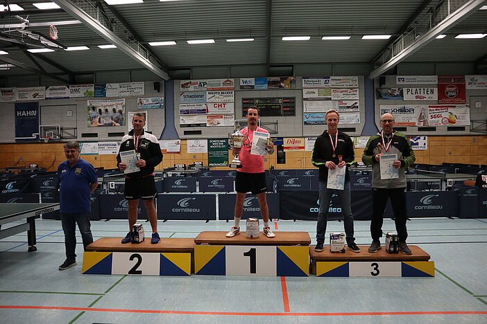 Für die Runde der letzten 4 qualifizierten sich Alexander Krießbach (TTC Wirges, punktbester Spieler), Nick Grimm (TB Metzingen), Markus Hein (TV Zell) sowie Karl Gromowski (TTC Grün-Weiss Kirn). In den Halbfinalen setzten sich Grimm und Gromowski durch.