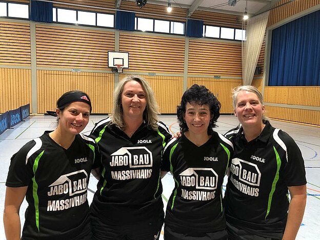 Im letzten Spiel der Hinrunde mussten die Damen des VfR Simmern wieder ohne Sabine Schneider antreten. In Essenheim wollten die Hunsrückerinnen mit Steffi Thul, Anja Tezcan, Daniela Spreier und Leila Jakobczak (von links) mit einem Sieg den 3.Tabellenplatz sichern. Aus den Doppeln ging man mit einer Punkteteilung, Thul/Tezcan unterlagen, während Jakobczak/Spreier den Sieg holten.