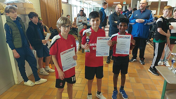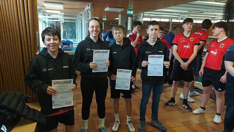 Etwas überraschend setzte sich die Mannschaft des SSV Buchholz (Hannah Hagedorn, Linus Schmahl und Leonie Goldberg) beim 4:2-Finalerfolg gegen den VfR Simmern durch. Rang drei sicherten sich die Rheinstädter der TG Boppard, die sich mit 4:0 gegen ihr Gegenüber vom TV Kümbdchen-Keidelheim e.V. behaupteten.