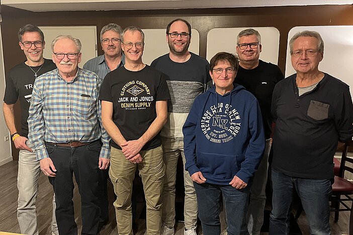 Abgebildet sind v.l.n.r.: Volker Bernd, Charly Jahn, Thomas Bohn, Martin Morschhäuser, Jonathan Johann, Ralf Petry, Matthias Liesenfeld und Jürgen Johann, wobei Gabriela Yfantidis, Daniel Schüler und Manfred Gruhn leider an der Sitzungsteilnahme verhindert waren.