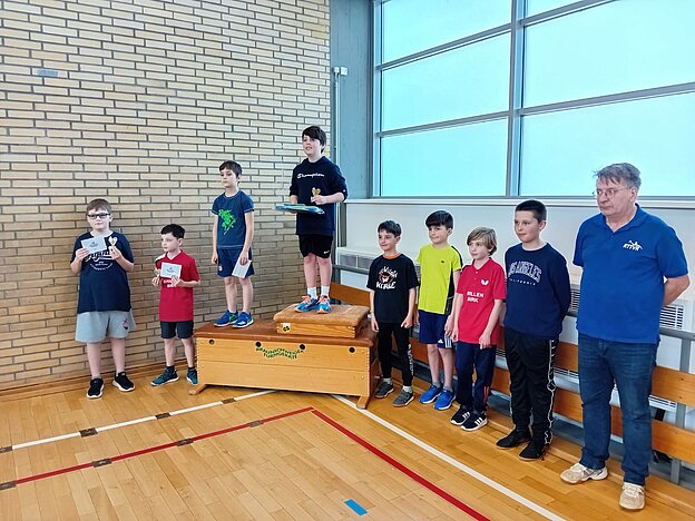 In der Klasse Jungen 0–8-jährige (11 Teilnehmer) wurde Emil Ballai Zimmer (Kirchberg) ohne Spiel- und Satzverlust als Sieger geehrt. Dicht dahinter folgte Justus Kronenberger (Oberwesel), der nur gegen den Erstplatzierten in der Gruppe sowie im Endspiel, die Spiele und Sätze abgab. In der Klasse der Mädchen 0–8-Jährige (2 Teilnehmerinnen) siegte Seline Eich (Dichtelbach) im Spiel gegen Annabelle Beyer (Simmen).