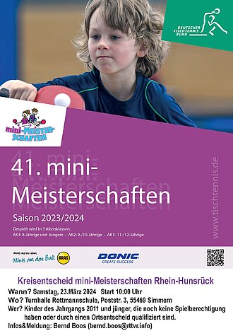 „An diesem Tag werden unsere Kleinsten ganz sicher die Größten sein, wobei der Spaß am Tischtennisspiel oberste Priorität genießt“ freut sich der Sohrener Kreis-Jugendwart Bernd Boos auf die Fortsetzung der mutmaßlich erfolgreichsten Breitensportaktion im deutschen Nachwuchs-Sport. „Weit über 1,5 Millionen kids haben sich in den vergangenen Jahrzehnten an den mini-Meisterschaften beteiligt und ungezählte Youngster für den Tischtennissport begeistern und gewinnen können. Auch wir Rhein-Hunsrücker bringen uns hier natürlich gerne ein.“