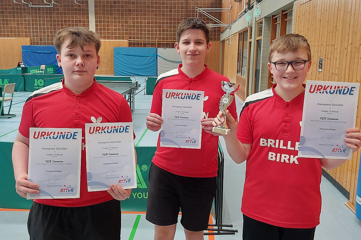 Arvid Kammann, Tobias Henrich und Julio Perez Rua hießen die Akteure des erfolgreichen Simmerner Reserveteams, welche sich mit einem 4:1-Erfolg über den TuS Rheinböllen (Benjamin Johann, Nico Paul Simon und Julian Dahlen) den Pokalgewinn sicherte.