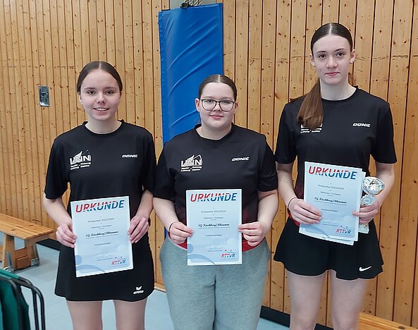 In überlegener Manier präsentierte sich das mit Lenya Bauch, Sophia Mikulski und Ruth Korbion besetzte Siegerteam der SG Kirchberg-Rhaunen, welches sich gegen die sich tapfer wehrenden Mädels vom TTC Roth (Dana Michel, Kim Krautkrämer, Laura Becker und Fenja Weber) mit 4:0 behauptete.