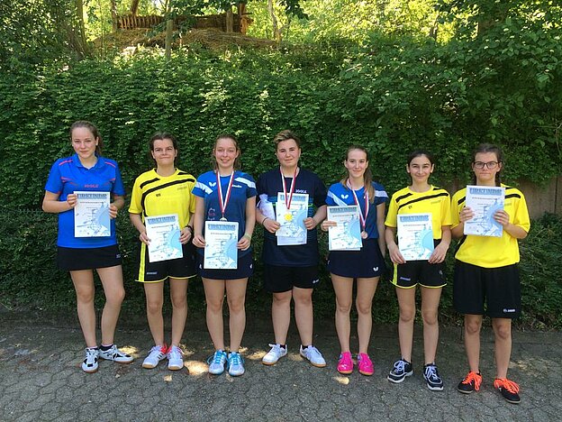 4 Spielerinnen aus der Region Rhein-Hunsrück starteten bei den B-Schülerinnen im Fünferfeld. Gegen die zu starke Spielerin aus Kirn hatten Marie Buhs (TuS Briedel) sowie das Trio des TuS Dichtelbach bestehend aus Hannah Michels, Mia Spang und Clara Nusbaum leider aber keine Chancen.