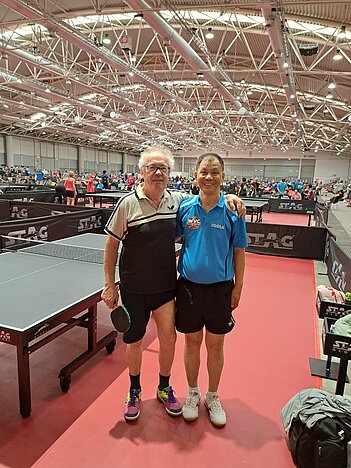 War ja klar, dass ich irgendwann mal einen Chinesen als Gegner habe. Rongyi Zhang mit Penholder-Spiel und einem exelenten Händchen. Die ersten beiden Sätze, fast auf Augenhöhe, gingen an ihn. Im Dritten konnte ich mit 11:9 zeigen das auch eventuell hier was möglich ist. Leider hat er dann im Vierten den Sack zugemacht mit 11:6. Er war irgendwie eine Idee stärker.