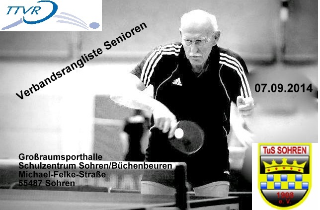 Am 07.09.2014 veranstaltet die Tischtennis-Abteilung des TuS Sohren in der Großraumsporthalle des Schulzentrums Sohren/Büchenbeuren die 12. Verbandsrangliste der Senioren.