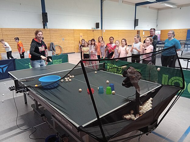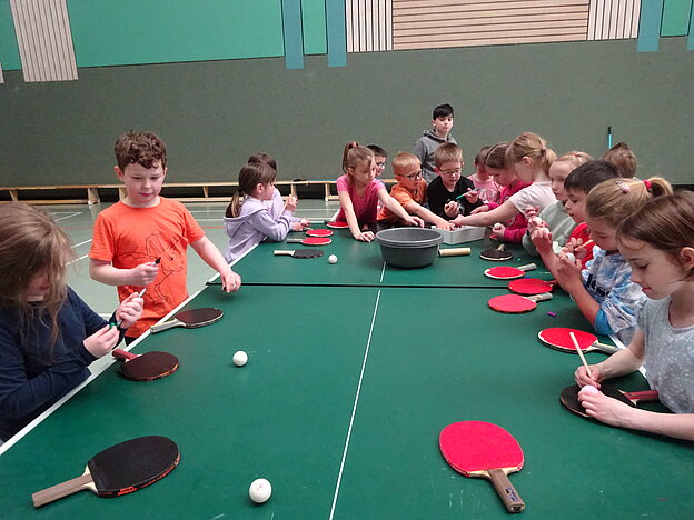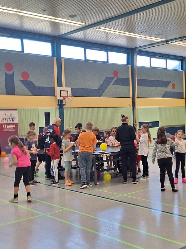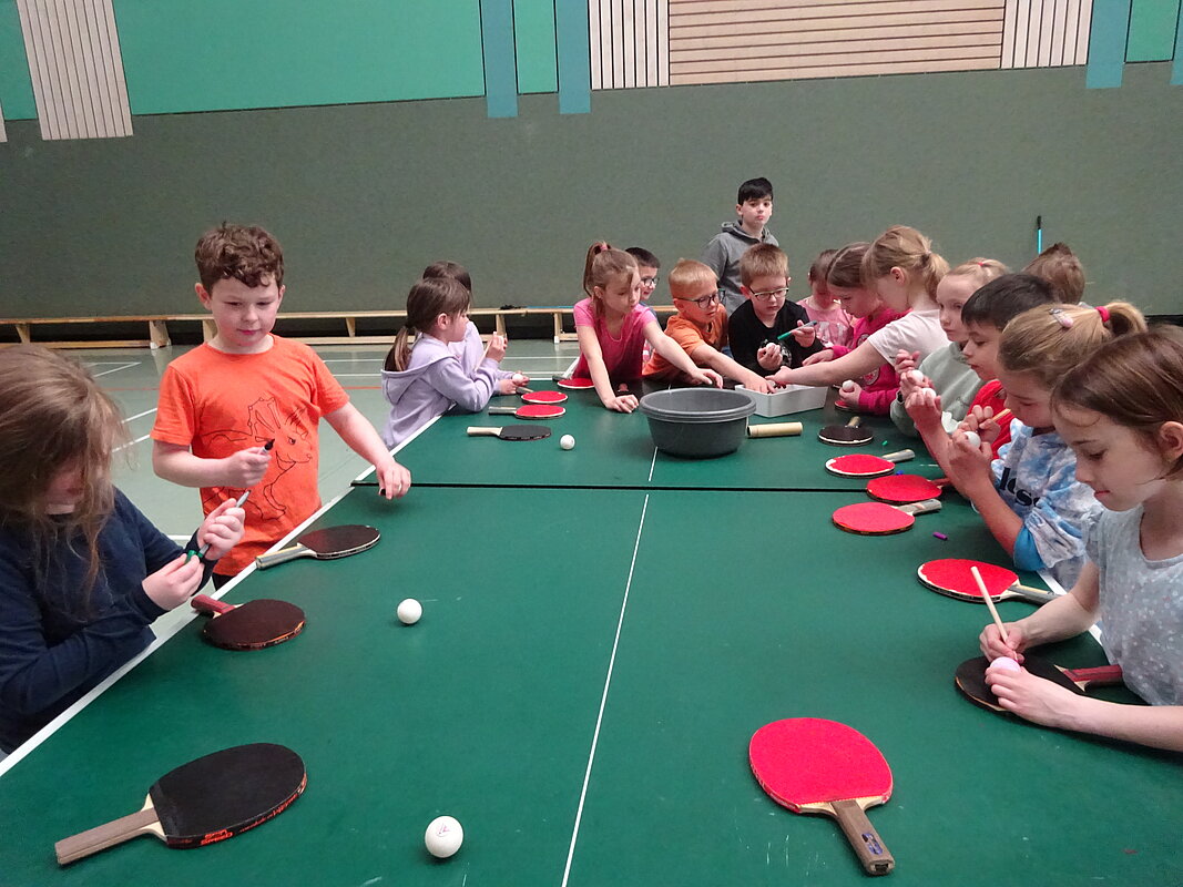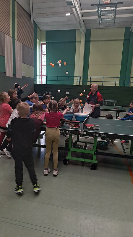 Am Dienstag, den 23.04.2024 startete der Projekttag an der Sonnental - Grundschule in Langenhahn. Hier konnten wir ca. 65 Kinder im Team um Erhard Mindermann sowie Stefanie Limbach u. Florian Fischer vom TTC Hornister begrüßen. Aufgrund der örtlichen Lage Schule Sporthalle wurden zwei 2 Gruppen mit bis zu 35 Kinder je Gruppe gebildet, die dann spielerisch (1+2. Schuljahr) oder bereits am TT-Roboter (3+4. Schuljahr) in einer Doppeleinheit, betreut wurden. Besonderen Dank gilt der Schulleiterin Frau Kaiser mit Ihrem Lehrerteam, die aufgrund der räumlichen Entfernung zwischen Schule und Halle spontan ein Bus zur Verfügung stellen konnte.