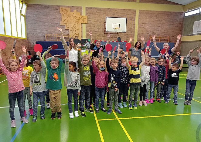 Am Mittwoch war das Team um Erhard Mindermann dann inder Grundschule Kroppacher Schweiz zu Gast. Insgesamt wurden 88 Kinder spielerisch an den Tischtennissport herangeführt. Besonderen Dank an die Schulleitung von Frau Gabi Greher und Übungsleiterin Elisabeth Klein.