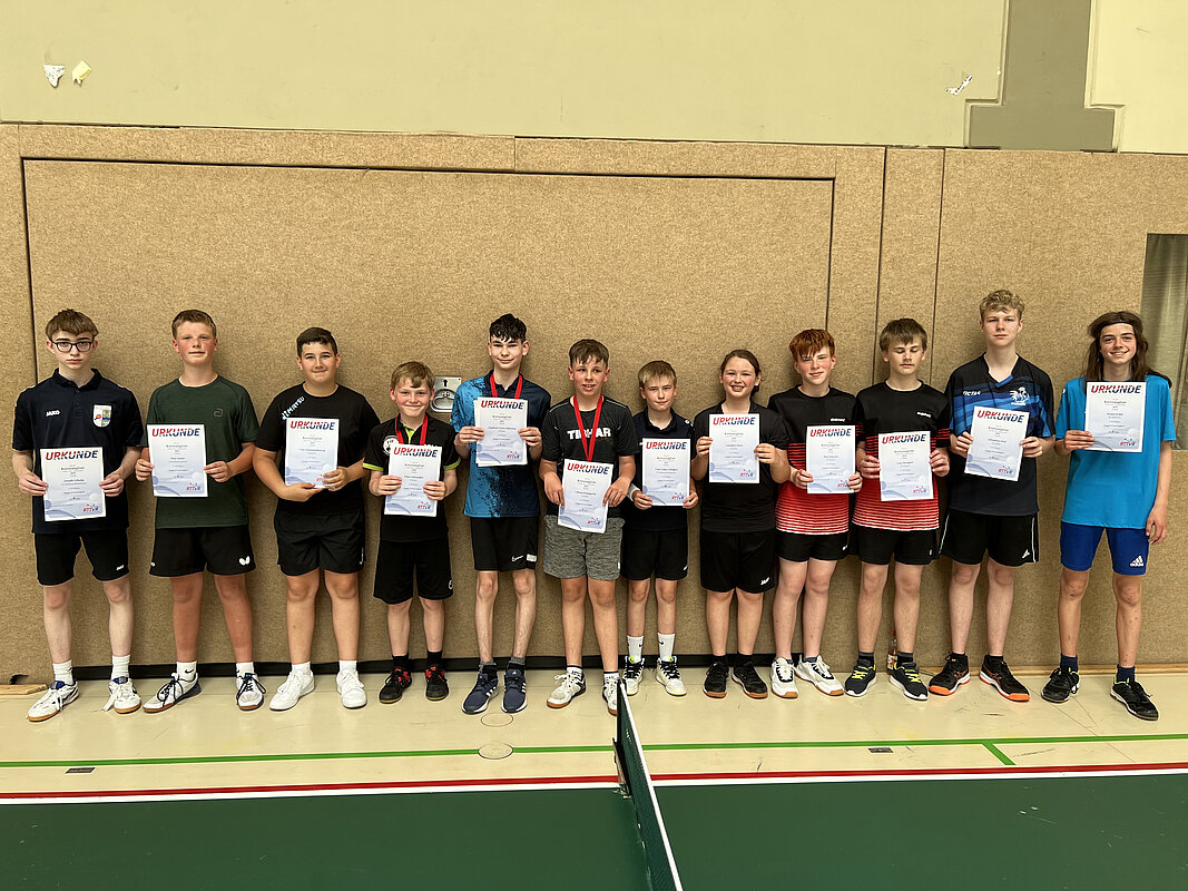 Während bei den kleinsten Mädchen mit Josephina Mertens aus Dermbach leider nur eine Teilnehmerin angetreten war, gab es bei den Jungen 11 immerhin acht Teilmehmer. Sehr deutlich mit 7:0 Spielen und ohne Satzverlust setze sich hier Jakob Schneider von der TTG Mündersbach/Höchstenbach durch. Die Silbermedaille ging an Andre Strebel vom FSV Kroppach. Dritter wurde Phil Luis Schulz von der TTSG Brachbach/Mudersbach.