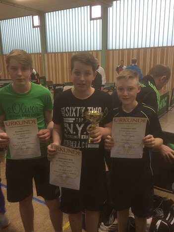 Besser machte es die C-Klassen-Jugend der ASG Altenkirchen um Betreuer Ralf Schumacher. Trotz eines zwischenzeitlichen 3:1-Rückstandes gegen die TTSG Brachbach/Mudersbach (Punkte für Brachbach durch Jacob Pfeifer und Lucas Euteneuer im Einzel und Doppel) schafften Mark Streginski (2), Max Lobas und Lars Hagenmaier noch die “Biegung” zum 4:3-Finalsieg.